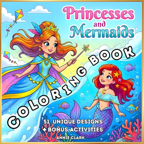 Princesses and Mermaids, Cute and Magical Coloring Book for Girls Ages 6-10: With Unique Talents and Creative Dreams - 51 Charming Designs.