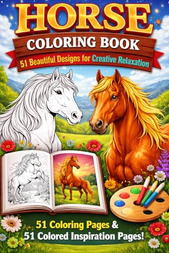Horse Coloring Book: 51 Beautiful Designs for Creative Relaxation: Includes 51 Coloring Pages and 51 Colored Inspiration Pages — Perfect for Horse Lovers, Kids, Teens, and Adults