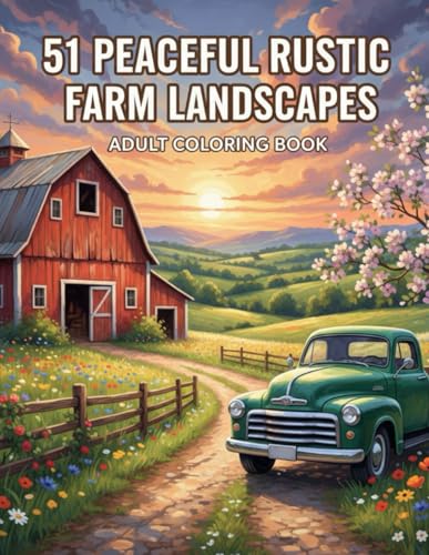 51 Peaceful Rustic Farm Landscapes: Adult Coloring Book: With Rustic Farmhouses, Vintage Barns, Cute Farm Animals, Cozy Interiors, Garden Scenes, ... & Creative Joy (Scenic Homestead Series)