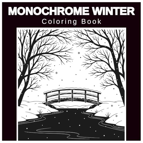Livre de coloriage monochrome d'hiver: Des scènes hivernales simples en noir et blanc à colorier – 51 motifs élégants à réaliser avec un seul crayon pour se détendre et trouver la paix créative