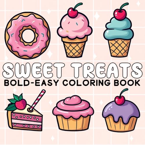 Sweet Treats Bold and easy: 51 Large Print Designs Featuring Simple and Bold Illustrations of Adorable Sweets, Desserts, Cupcakes, Candy, Chocolate and More – Perfect for Relaxation and Creative Fun