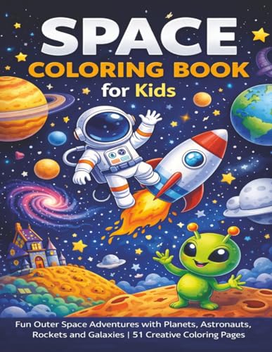 Space Coloring Book for Kids: Fun Outer Space Adventures with Planets, Astronauts, Rockets and Galaxies , 51 Creative Coloring Pages