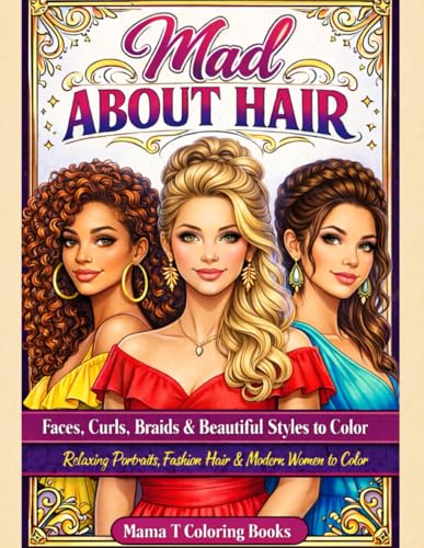 Mad About Hair: Faces, Curls, Braids & Beautiful Styles to Color: A Stylish Fashion Portrait Coloring Book for Women Featuring Trendy Hairstyles, Elegant Faces, and Relaxing Creative Art Therapy