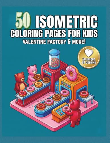 50 Isometric Coloring Pages for Kids Valentine Factory & More: 50 Cute & Creative 3D Puzzles with Chocolate Labs, Sweet Robots, and Kawaii Animals | Fun Activity Gift for Boys & Girls Ages 6-10