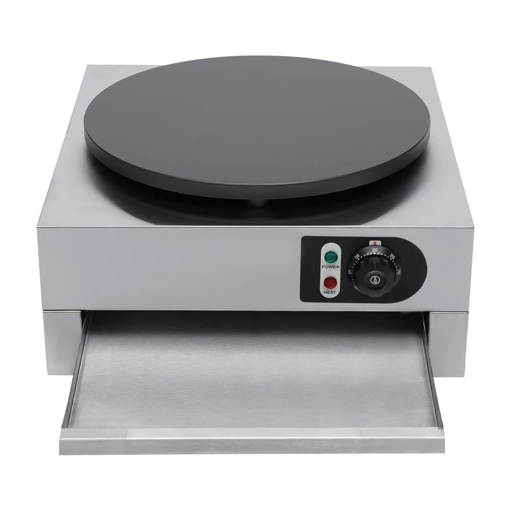 Elektrisk crêpe maker, 40 cm med utdragbar bricka, crêpemaker, inbyggd termostat, 50–300 °C, steglöst justerbar, 3 KW