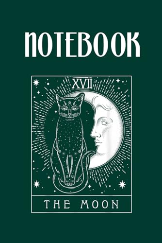 Tarot Card Crescent Moon And Cat Cute On Green Cover Fun Gifts for Men Women Kids: Notebook