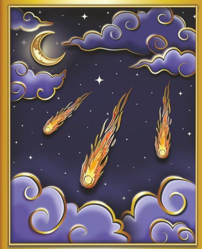Meteor Shower & Crescent Moon in Clouds Journal Notebook: 7.5" x 9.25" | College Ruled | 110 Pages | Orange & Gold Version | For Kids, Teens, and Adults