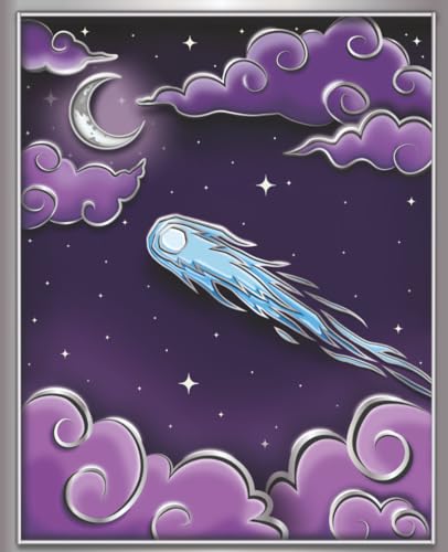 Comet & Crescent Moon in Clouds Journal Notebook: 7.5" x 9.25" | College Ruled | 110 Pages | Blue & Silver Version | For Kids, Teens, and Adults
