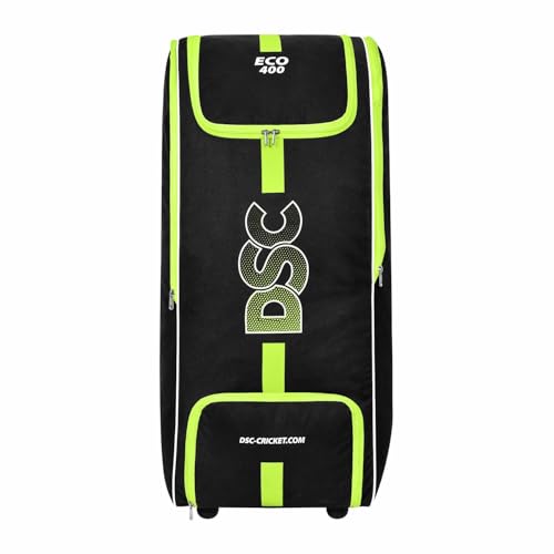 DSC Eco 400 Cricket Kit Bag | Färg: Svart & Neongrön | Storlek: 96,5 x 36,8 x 34,3 cm | för män & pojkar | Material: Polyester | Integrerad skoficka | vadderade och justerbara axelremmar