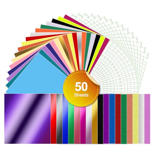 50-pack smart vinyl permanent för Cricut Explore 3/Maker 3, 33 x 30,5 cm smart självhäftande vinyl permanent glitter vinyl kromglans med överföringsfolie vinyl självhäftande för gör-det-själv fönster
