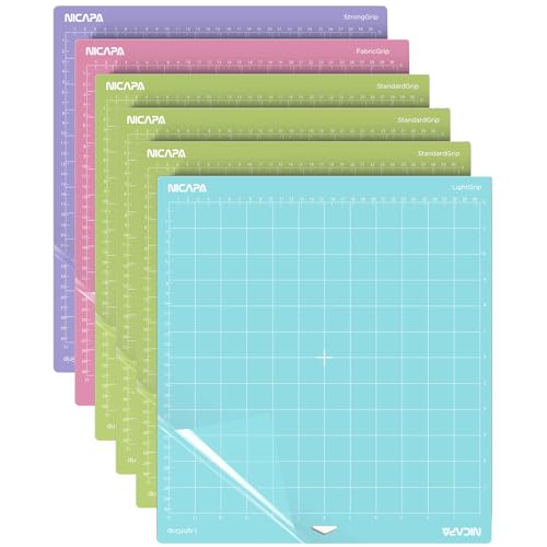 Nicapa 30,5 cm x 30,5 cm skärmatta för Cricut Maker 3/Explore 3/Air 2/Air, 6 stycken Light/Standard/Strong/FabricGrip skär allt från känsligt papper till tunga specialmaterial