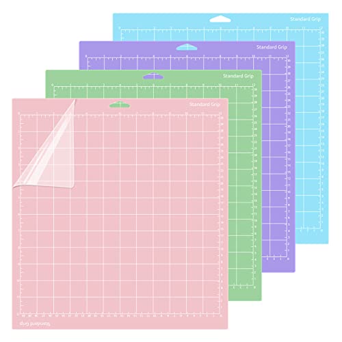 Daelesr 4 stycken skärmatta för Cricut Explore Air 2/Air/One/Maker, 12 x 12 tum standardgrepp lättviktig stark skärmatta, självhäftande basdyna för Cricut Joy (A)