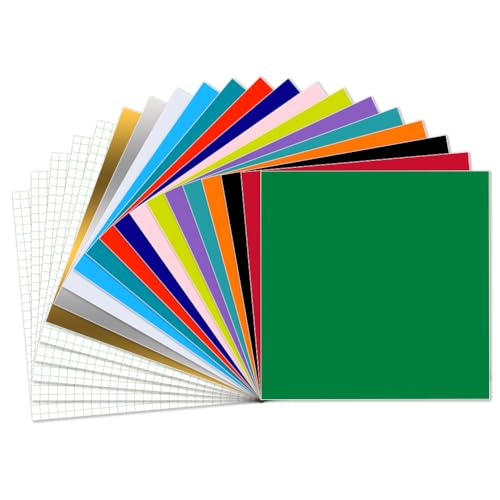 Smart vinyl permanent för Cricut Explore 3/Maker 3, 15 stycken vinylplotter film 30,5 x 30,5 cm plotterfolie självhäftande överföringsfolie plotter set för gör-det-själv-koppar, bilar, banderoller,
