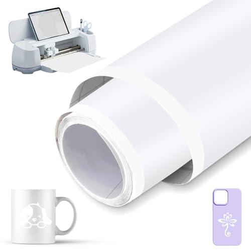 Smart vinyl permanent 33 cm x 200 cm, smart självhäftande vinyl permanent för Cricut Explore 3/Maker 3, självhäftande vinylrulle, lämplig för att dekorera koppar, planteringskärl, fönster (vit)