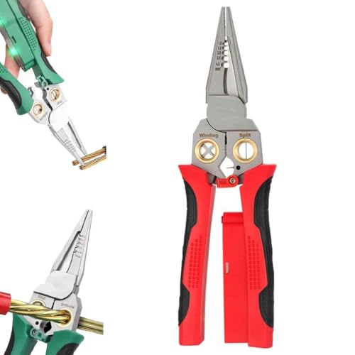 8 In 1 Wire Stripping Pliers,Wire Stripper with Voltage Tester,Electric Pliers,Pinzas De Electricidad,Multifunctional Electrician Tool for Cutting,Pulling,Winding,Stripping and Crimping (Red)