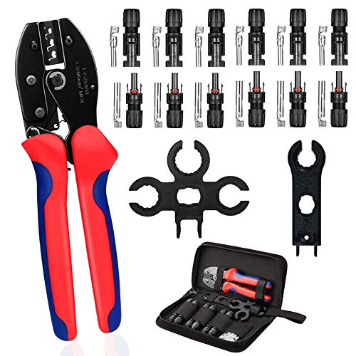 nuyikaso Solar Crimping Tool Set 15 pairs of solar connectors, male/female 1 crimping tool 2 wrenches for AWG26-10 2.5/4/6 mm² solar panel solar cable connectors solar modules