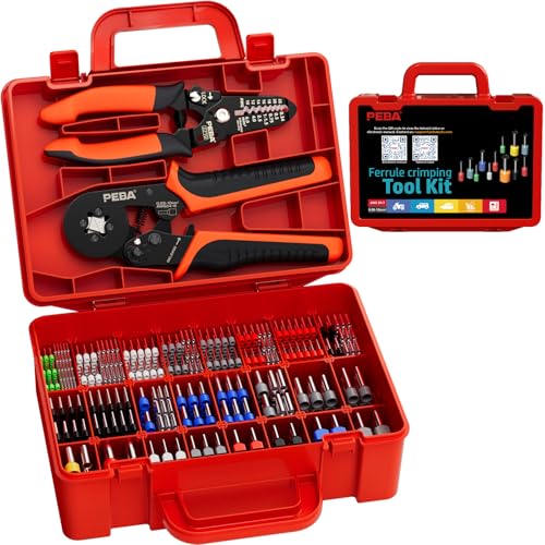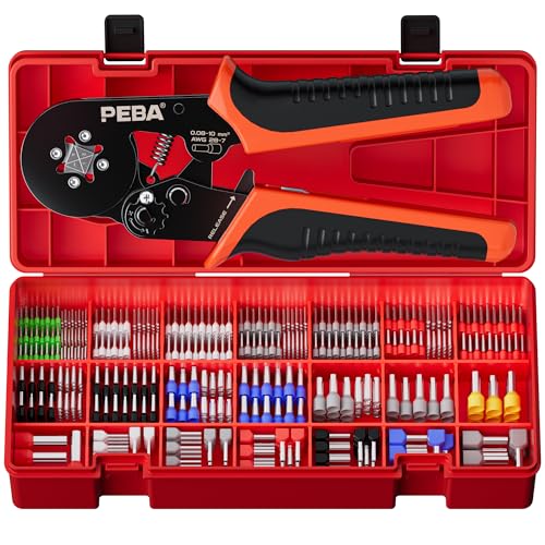 PEBA Kit med crimptång för ändhylsor och hylsor i 28 storlekar, AWG 28-7 självjusterande fyrkantig crimptång för kabelhylsor, elektriska kabelhylsor, fyrkantig crimptång med spärr för kabelhylsor