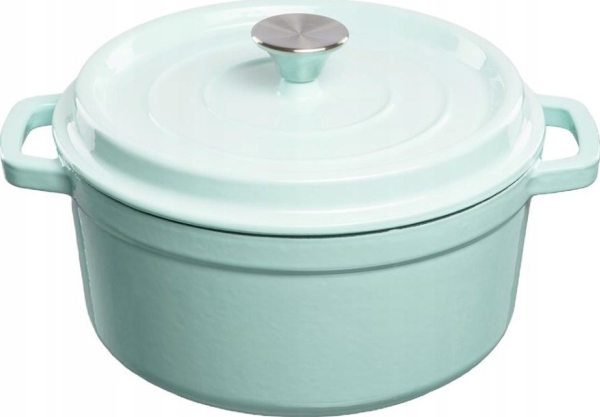 Cast Iron Pot Grand Feu, Minimalist Design "Casserole" With Lid, 4.7L, Turquoise Color.