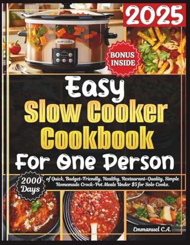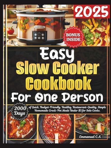 Easy Slow Cooker Cookbook for One Person 2025: 2000 Days of Quick and Healthy, Budget-and Beginner-Friendly, , Restaurant-Quality, Homemade Crock-Pot Meals Under $5 for Solo Cooks. Bonus Inside