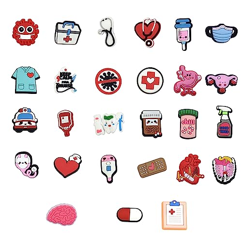 Schuuan Hängsmycke Pins för Crocs, 27 st skoberlocker sjuksköterska medicin skosläpvagn tecknad läkare sjuksköterska tillbehör för träskor, gör-det-själv-dekorationer
