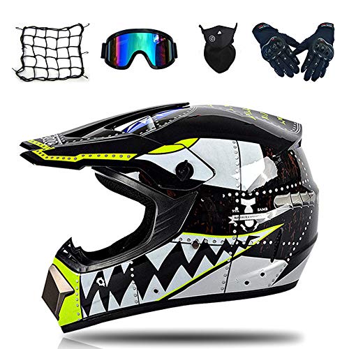 MRDEAR Hai Motocrosshjälm med glasögon (5 stycken) motorcykel crosshjälm barn svart cross fullface-hjälm motorcykelhjälm skyddshjälm-set för DH Enduro Downhill MTB Quad BMX ATV motorcyklar (XL)