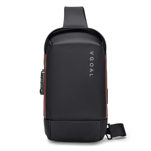 VGOAL Axelväska för män och kvinnor, 10,1 tums bärbar dator vattentät sling ryggsäck crossbody axel med USB-laddningsport, 6316-svart