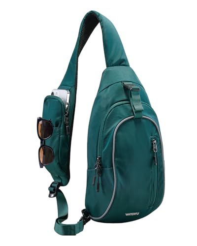 Waterfly Crossbody-ryggsäck med axelrem, Vandringsresväska för kvinnor och män, bröstväska, dagspackning, modeväska, axelväska, Mörkgrön, small