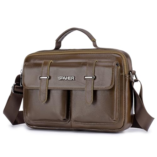 SPAHER Herr kvinnor Äkta Läder Axelväska Handväska 11 Tums Ipad Business Messenger Bag Ryggsäck Crossbody Casual Tote Sling Resväska Satchel Sportryggsäck Med Justerbar Axelrem, Brun
