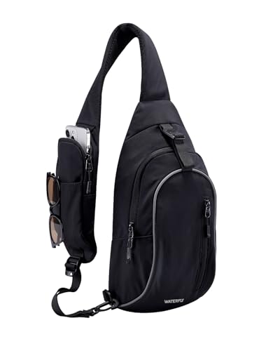 PivotWing Slingväskor, vattenavvisande nylon, lätt liten ryggsäck crossbody en sida axelväska för män kvinnor vandring resor cykling utomhus, Svart, 41*21*10, Slingryggsäck
