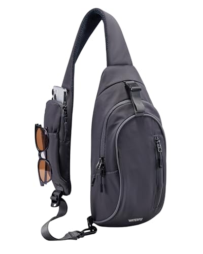 PivotWing Slingväskor, vattenavvisande nylon, lätt liten ryggsäck crossbody en sida axelväska för män kvinnor vandring resor cykling utomhus, Grått, 41*21*10, Avslappnad