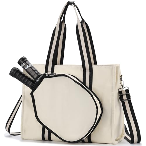 VASCHY Pickleball väska, crossbody sling pickleball tote väskor pickleball paddle hållare fodral quilted buffer arbete fitness sport tote för 2 racketar med hängande remmar beige