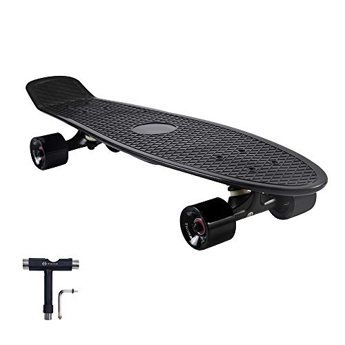 WHOME Skateboards – 27 tum cruiser skateboard komplett för vuxen/barn flicka/pojke nybörjare/pro pendling retro plastdäck ABEC-9 lager med T-verktyg (svart)