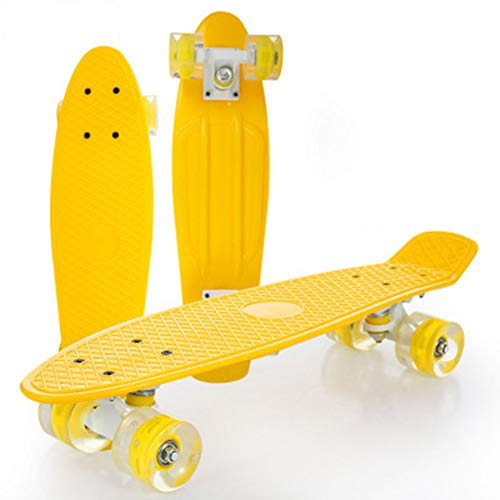 DFWYG Penny Board 56 cm komplett skateboard mini nybörjare cruiser plast skateboard för tonåringar pojke barn flicka vuxen, LED-upplysta hjul med ABEC-7-lager, gul