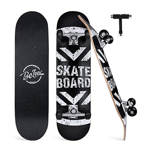 BELEEV Skateboards, 78,7 x 20,3 cm komplett skateboard för nybörjare, 7 lager, kanadensisk lönn, dubbel kick, konkav, cruiser, trick, skateboard för barn och vuxna