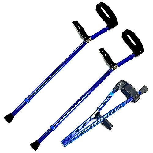 Underarmskryckor med svängbar stängd manschett (par), justerbara kryckor för vuxna, lätt aluminium fällbara armbågskryckor med ergonomiska bekväma handledshandtag (färg: Blå)