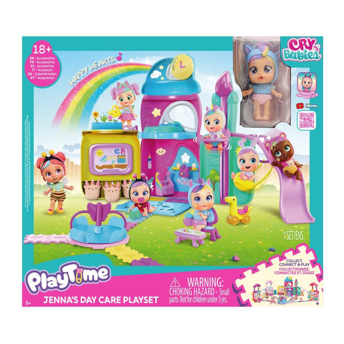 Cry Babies Playtime Jenna's Day Care, dockhus, lekset med exklusiv docka Jenna, 18+ tillbehör och överraskningar, hon gråter riktiga tårar, leksaker och gåva för barn från 4 till 6 år