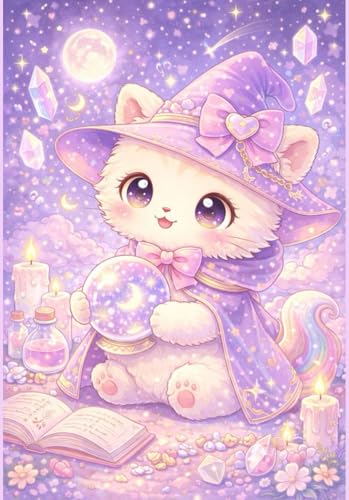 Cute Kawaii WItchy Cat with Crystal Ball A5 Dotted Notebook Journal