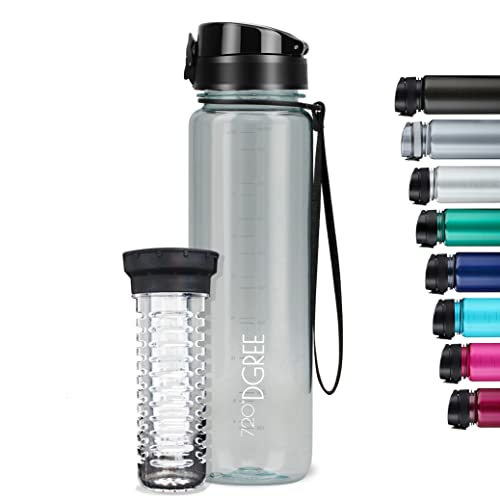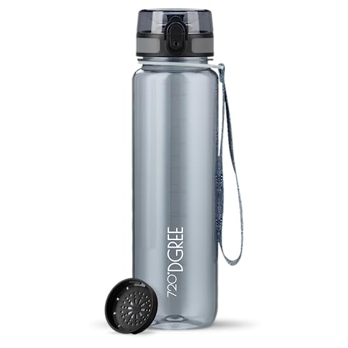 720°DGREE Vattenflaska "uberBottle" crystalClear +Sikta- 1l - BPA-fri - Vattenflaska för sport, gym, fitness, cykel, utomhus, Uni - Sportflaska tillverkad av Tritan - Lätt, okrossbar, hållbar