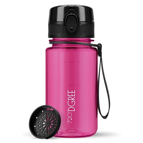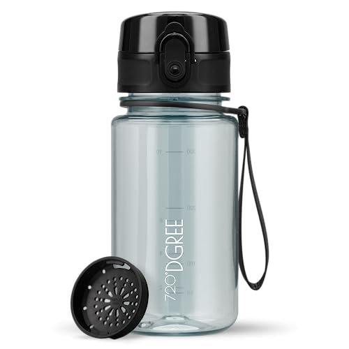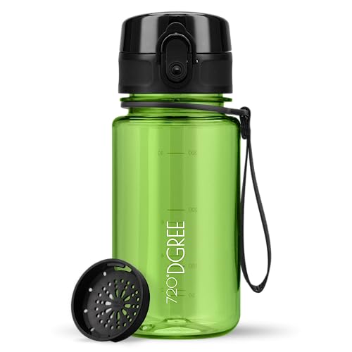 720°DGREE Vattenflaska Barn "uberBottle" crystalClear +Sikta - 350 ml - BPA-fri, läckagesäker - för skola, dagis, flickor och pojkar från 3 år - liten vattenflaska - lätt, splitterfri
