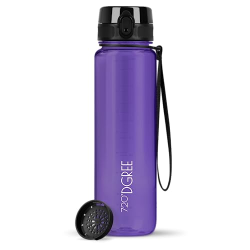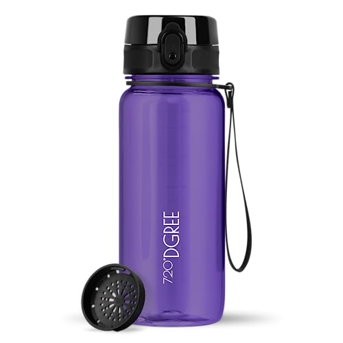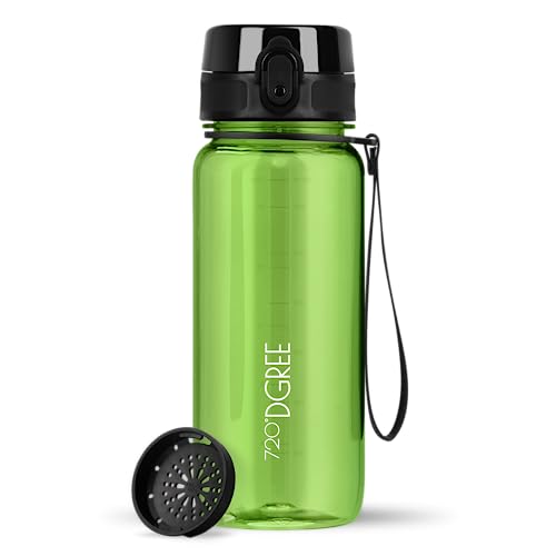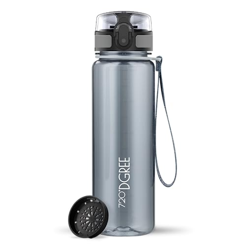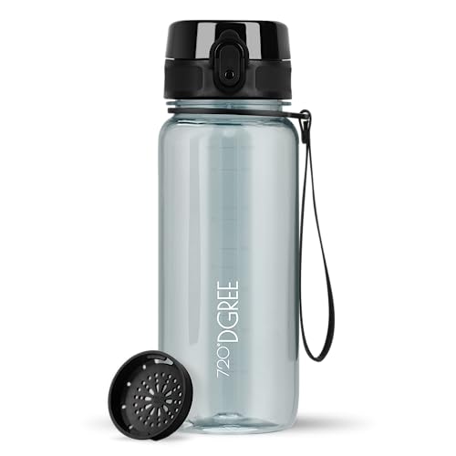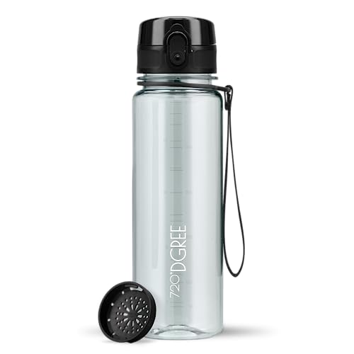 720°DGREE Vattenflaska "uberBottle" crystalClear +Sikta- 650 ml - BPA-fri - Läcksäker vattenflaska för barn, skola, universitet, sport, gym, fitness - Sportflaska tillverkad av Tritan - Lätt, okrossbar