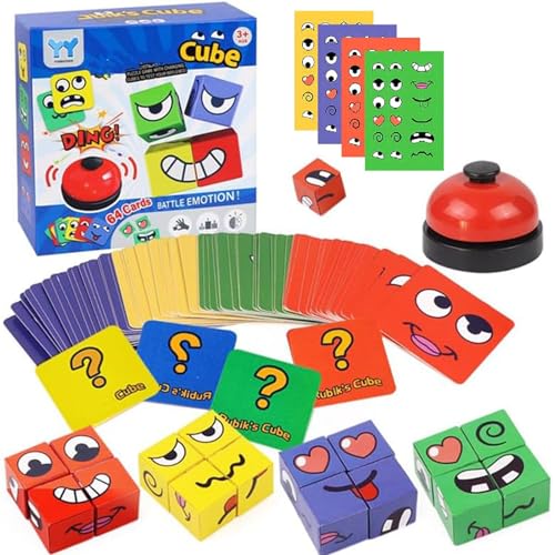 Spel för barn Face Change Cube Game Expression Puzzle Building Blocks med Bell Face Changing Magic Cube Wooden Express Leksak för åldrarna 3–12 år