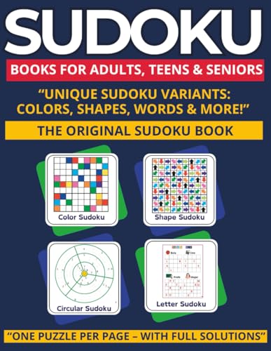 The Original Sudoku Book for Adults, Teens & Seniors: Unique Sudoku Variants with Colors, Shapes, Words & 3D Cube – Large Print Puzzle Book, One Puzzle per Page, Full Solutions