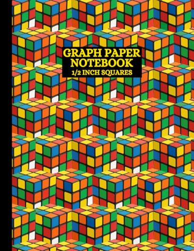 1/2 Inch Squares Graph Paper Notebook with Colorful Puzzle Cube Cover: Large Grid for Math, School, Drawing, Sketching - Great for Children, Boys, Girls, Students, Brain Game Lovers