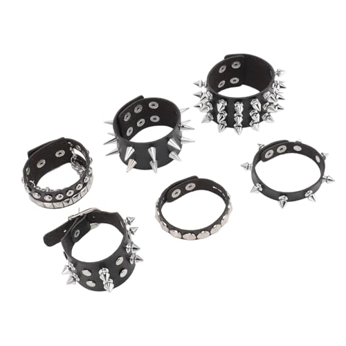 6st Punk Läder Spike Nit Armband Set, Retro Classic Spiked Metal Cuff Armband, Justerbar Tryckknapp Spiked Wrist Cuff för Män Kvinnor (6 delar set)