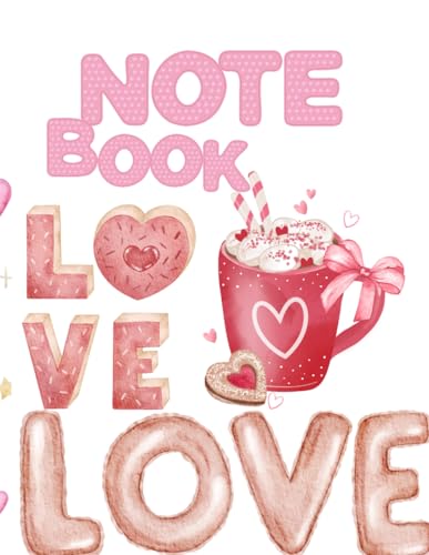 A notebook with a white cover with the word love written on it and a red coffee cup.: Valentine's Day gifts for girls Boyfriend or teenager College of ... Organization, 100 pages, 8.5x11 inches