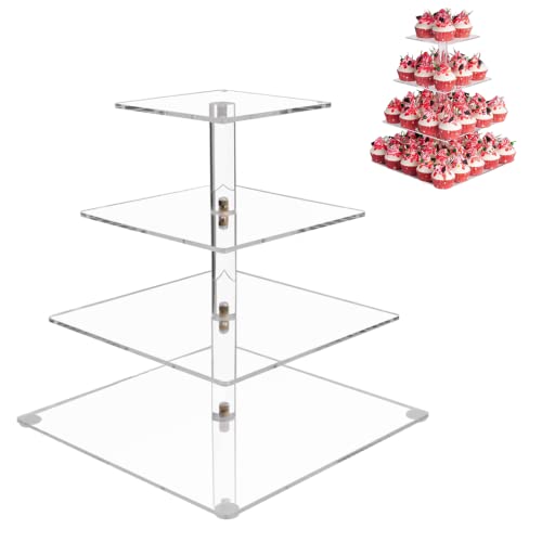 Cupcake Stand, Cake Stand Set i Akryl, Cupcake Holder, Candy Cupcake Tower, Bar Party Dekor 4 nivåer Display för Bakverk för Fest Bröllop Födelsedag