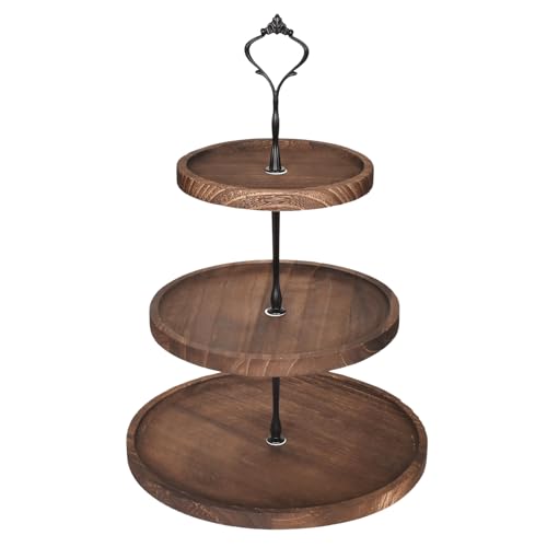 Tårtställ 3 nivåer, Vintage Trä Cupcake Stand Cupcake Tårta, med Metallhandtag, Frukt och Tårtställ, Återanvändbar Tårthållare för Party Bröllop Födelsedag