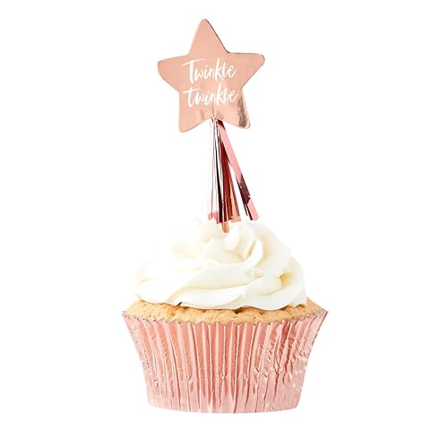 Ingefära Ray Ros Guld Foiled Twinkle Star Baby Shower Party Cupcake Toppers 12-pack