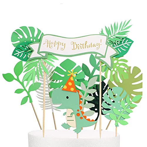 MiaLover 17 stycken dinosaurietårta toppare cupcake dino tårta toppers gröna blad tårta dekoration grattis på födelsedagen tårtdekoration för barn pojkar fest födelsedag dekoration muffin bakning