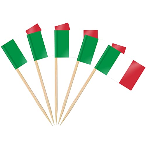 AhfuLife 100/200 st italienska tandpetarflaggor tårtdekorationer för olympiska dekorationer, Italien cocktailpinne flagga för smörgås mat cupcake toppers servis, VM-festtillbehör, dekor (100 st)